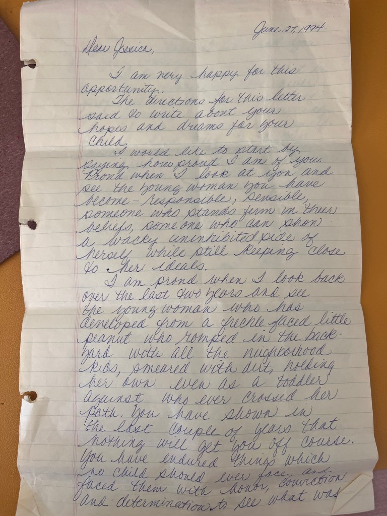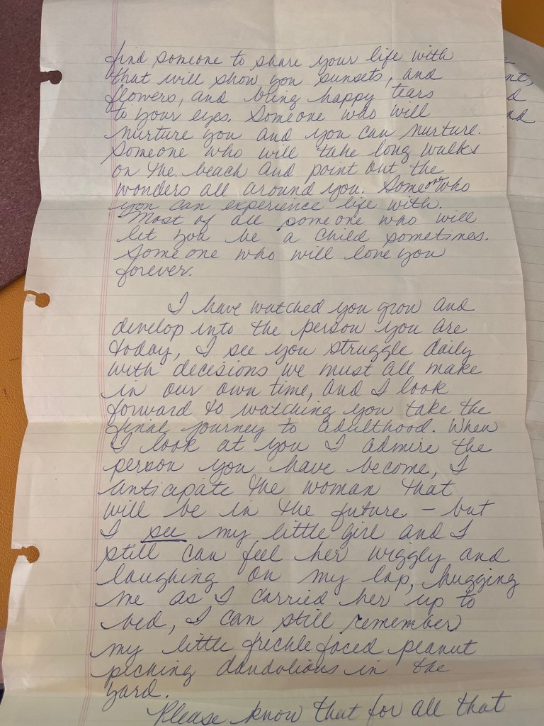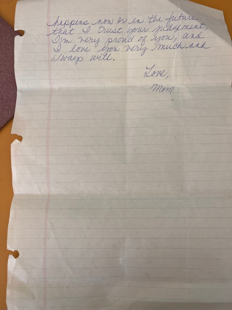 While going through some things a few weeks ago, I found a letter my mother had written to me, when I was 15. I was going to a church retreat.